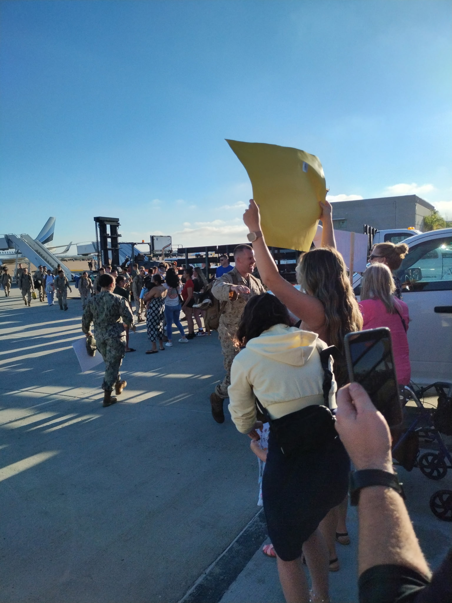 Welcome Home Committee greeted 50 Marines attached attach to HMH 361 with over 100