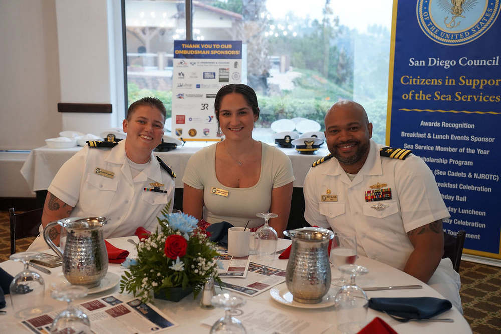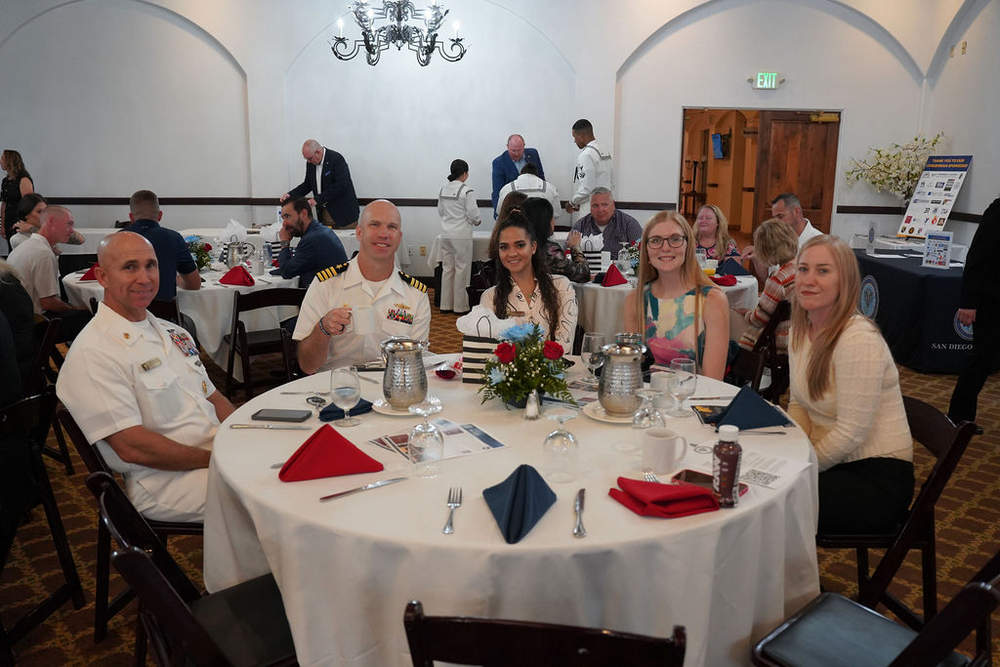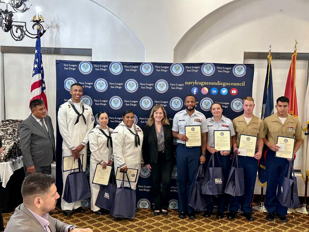 San Diego Council held its 4th Annual Sea Service Member of the Year Awards in hosting 90 guests in attendance that included; Naval Education & Training, Force Development, Deputy Commander; Rear Admiral Robert C. Nowakowski, Commander, Third Fleet Command Master Chief Trenton Schmidt and Retired Master Chief Petty Officer of the Navy Russ Smith. Guest Speaker; RADM Nowkowski provided insight on Navy’s Warfighting Strategy, Culture of Excellence 2.0, Get Real Get Better, Navy Leadership Development Framework 3.0 and Recruting/Retention initiatives. He was presented an appreciation certificate by Vietnam Prisoner of War Survivor; CDR Jim Bedinger, USN(Ret) and President Tracy Owens. Tracy presented the Community Partnership Appreciation Award to Navy Veteran and Business Owner of LC Embroidery & Cleaners; Rolan & Virginia Patzi for their strong support of the council’s sea service programs. An additional thank you to LC Embroidery generous donation of $5k in support of the council’s awards recognition and breakfast sponsor. Congratulations to our 2024 Sea Service Member of the Year Award Winners; Junior Sea Service Member (E4 Category); AO3(AW/SW) Modesty Perez – USS THEODORE ROOSEVELT (CVN 71), Sea Service Member (E5 Category); HM2(FMF) Amir Horton – USS LAKE ERIE (CG 70) and Senior Sea Service Member (E6 Category); AE1(AW/SW) Vinh Nguyen – Commander, Fleet Logistics Multi-Mission Wing. Well done to all finalist nominees; JrSSMoY; PR3 Darrion Jackson – HSC3, MM3 Bryan Rodriguez-Lopez – USS LAKE ERIE (CG 70) and LCpl Dylan Studt – 3D LAAD. SSMoY; HM2 Ronnie Delacruz – MAG16, HM2 Daniel Morales-Garcia – HMLA 369, AO2 Gisele Quintero – USS THEODORE ROOSEVELT (CVN 71), Sgt Maaliyah Bagnerise – 3D LAAD and AZ2 Madison Wade – HSC3. SrSSMoY; LS1 Brittnee Brinkley – USS THEODORE ROOSEVELT (CVN 71), AE1 Marianne De Silva – HSM 73, HM1 Raevin Estacio – MACG 38, AO1 Noel Etcheto – VFA 154, IT1 Joshua Lamp – USS LAKE ERIE (CG 70), AWS1 Justin Pickering – HSC3, GSM1 Ninoshka Santana-Ilarraza – USS CHAFFE (DDG 90) and OS1 Amber Huther – USS CARL VINSON (CVN 70).