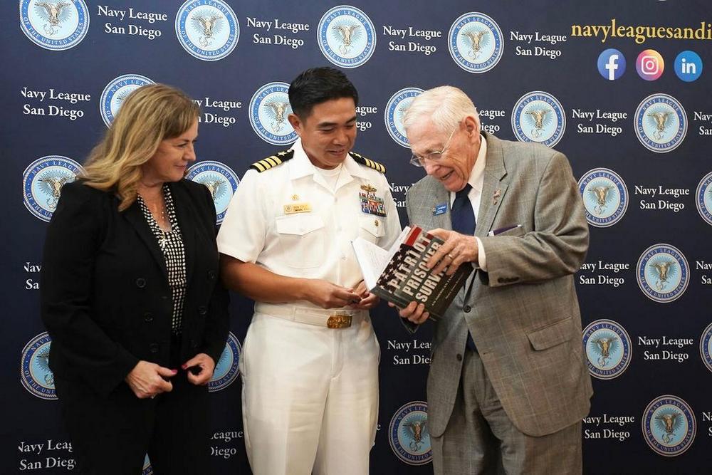 During this event, Captain Kim’s met with numerous guests and was presented a book by Author, James Bedinger, CDR, USN(Ret) and Vietnam Veteran and Prisoner of War Hero – “Patriot, Prisoner, Survivor: An American Family at War”. Additional highlights of this event was Navy League San Diego Sea Service Chairman; Marty Magana, CMDCM, USN(Ret) presenting Sailor of Quarter awards to USS San Diego (LPD 22) Blue Jacket Sailor of the Quarter (4th Qtr); Fireman Tysen W. Sparbel and Amphibious Squadron THREE Senior Sailor of the Quarter(1st Qtr); OS1(SW/AW) Marcell M. Harris for professional excellence.